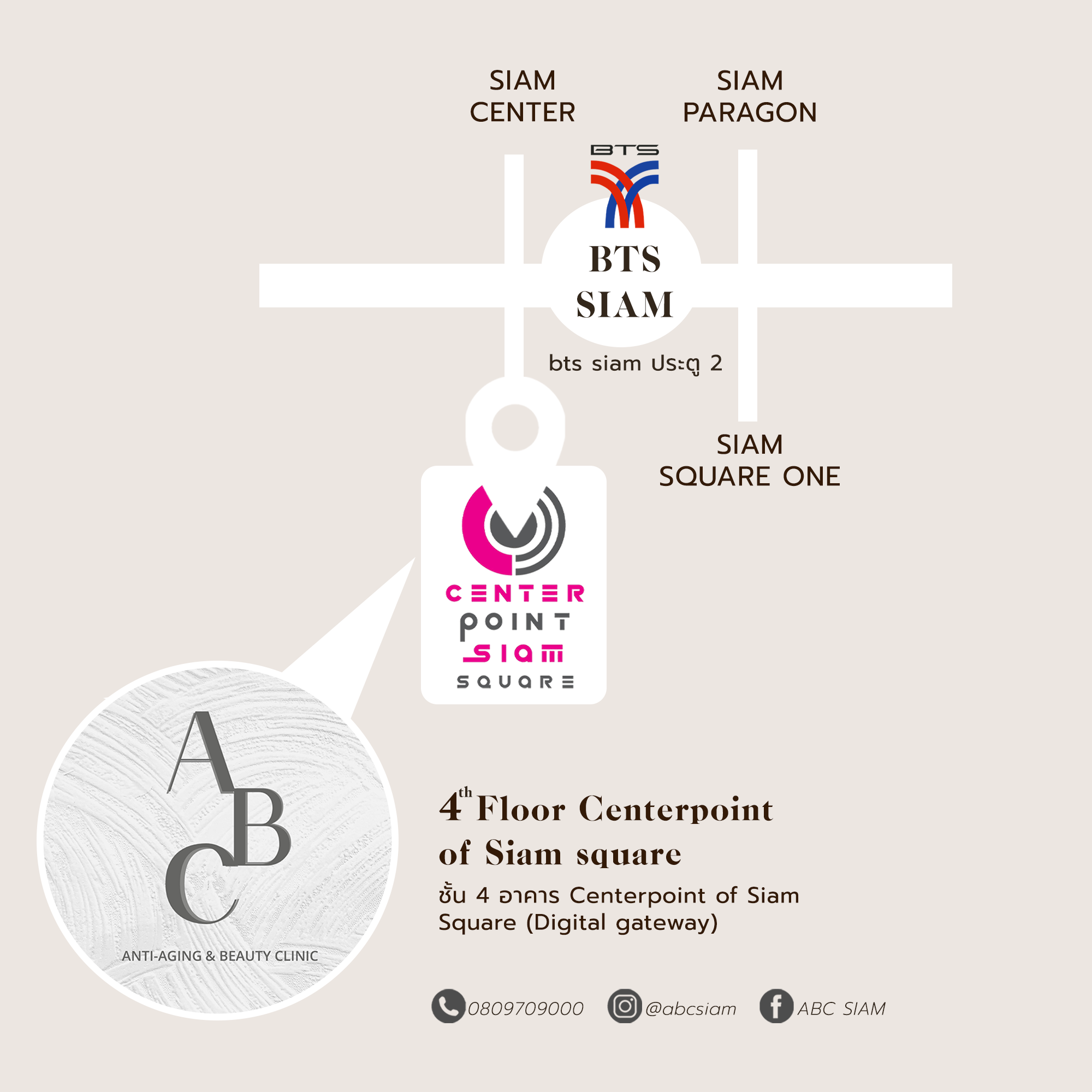 คลินิก ABC Siam ของเราตั้งอยู่ ที่ ชั้น 4 อาคาร Centerpoint of Siam Square (Digital gateway) ค่ะ